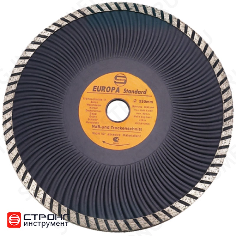 Имеет прочное стальное тело с волнообразным профилем и сплошной турбированной режущей кромкой. Характеризуется экономичным энергопотреблением. Идеальное решение как для сухой резки, так и для резки с водой. Волнообразная форма поверхности диска предупреждает перегрев алмазного слоя, способствует более интенсивному отводу отработанного материала и эффективно гасит вибрации, снижая тем самым нагрузку на рабочий инструмент. Подходит для резки бетона, плитки, кирпича, камня и многих других твердых и среднеабразивных материалов.