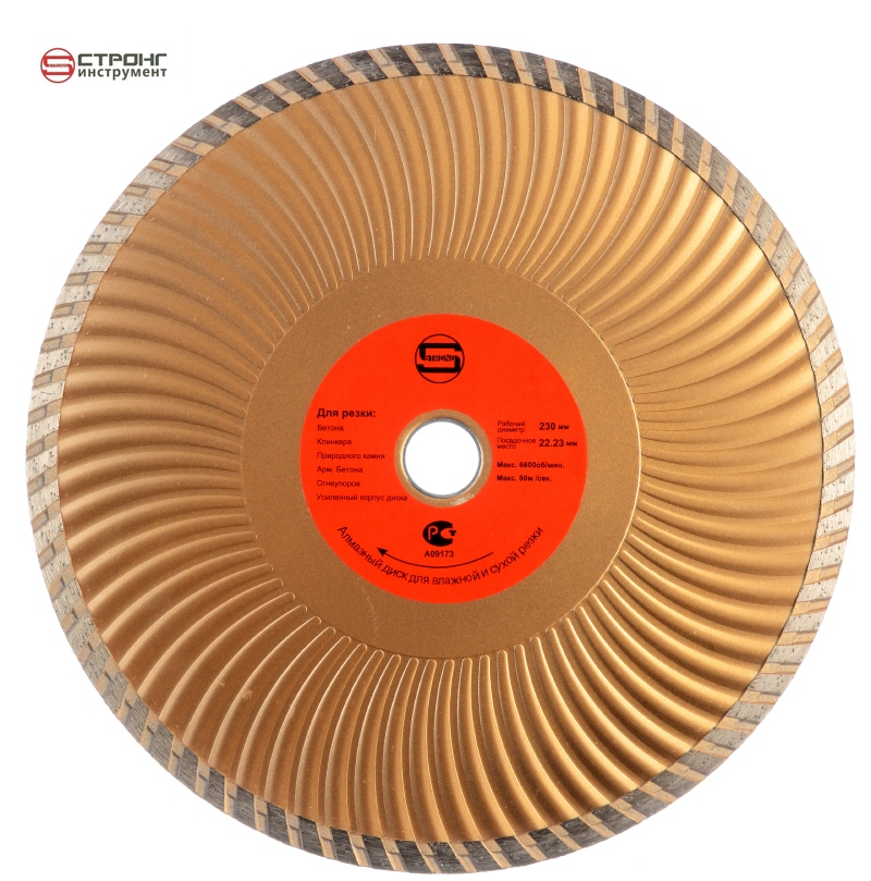 Имеет прочное стальное тело с волнообразным профилем и сплошной турбированной режущей кромкой. Характеризуется экономичным энергопотреблением. Идеальное решение как для сухой резки, так и для резки с водой. Волнообразная форма поверхности диска предупреждает перегрев алмазного слоя, способствует более интенсивному отводу отработанного материала и эффективно гасит вибрации, снижая тем самым нагрузку на рабочий инструмент. Подходит для резки бетона, плитки, кирпича, камня и многих других твердых и среднеабразивных материалов.