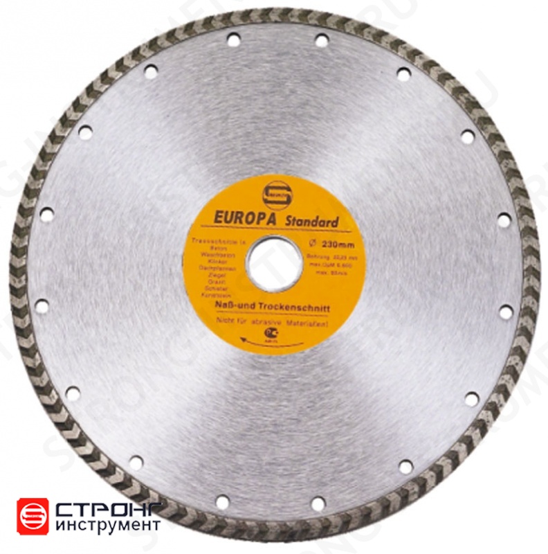 Диск (круг) алмазный отрезной Турбо Standart D 125 х 22.23 х 10 мм предназначен для сухой и влажной резки особо твердых минеральных оснований. Имеет непрерывную турбированную кромку для точного реза и компенсационные отверстия для дополнительного охлаждения. Используется совместно с УШМ и плиткорезом. Турбо форма кромки ускоряет рабочий процесс и способствует своевременному отводу пыли из зоны обработки. Позволяет получать качественный рез без трещин, сколов и прочих дефектов. Обладает большим рабочим ресурсом и высокой производительностью. Прочный, надежный и износостойкий.