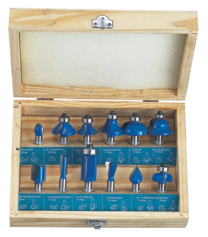 Набор твердосплавных фрез по дереву, 12 фрез, СТФ-8312