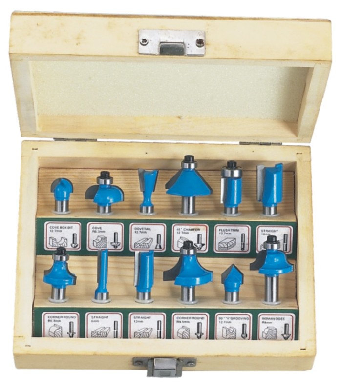 Набор твердосплавных фрез по дереву СТФ-8313. Сверлильная оснастка с цилиндрическим хвостовиком используется на сверлильных и фрезерных станках, в дрелях, ручных фрезерах и прочих инструментах с кулачковыми патронами. Фрезы работают по древесине любых пород и родственным материалам (ДСП, ДВП, всевозможные плиты). Возможно сверление пластмассы, полимеров, других органических изделий, а также паронитов и технической резины. Рабочие кромки их твердого сплава отлично выдерживают высокие температуры и обеспечивают фрезам устойчивость к износу. Автозаточка режущих граней по современным технологиям делает их острее, тем самым повышая эффективность инструментов и уменьшая риск прижогов.