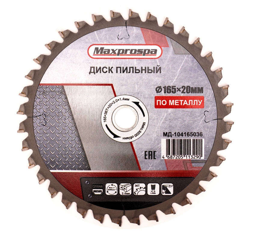 Пильный диск по металлу 165x20xТ36 Maxprospa МД-104165036