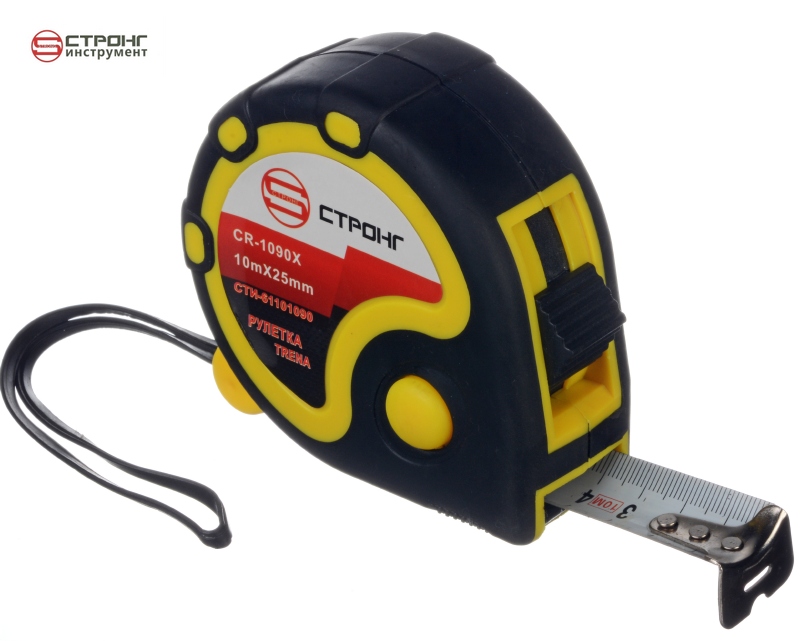 Рулетка Стронг 10 м х 25 мм (магнит) – ручной инструмент для выполнения измерений и разметки. Имеет ударопрочный обрезиненный пластиковый корпус, который не выскальзывает из рук во время работы и стойко выдерживает механические воздействия различной интенсивности. Лента рулетки выполнена из нержавеющей стали и покрыта специальным защитным составом, что предотвращает ее коррозию, образование заломов и стирание обозначений. Шкала – метрическая. Цена деления – 1 мм. Фиксация ленты в неподвижном положении осуществляется за счет двойного стопора. Сама рулетка быстро и просто закрепляется на ремне с помощью удобной скобы.