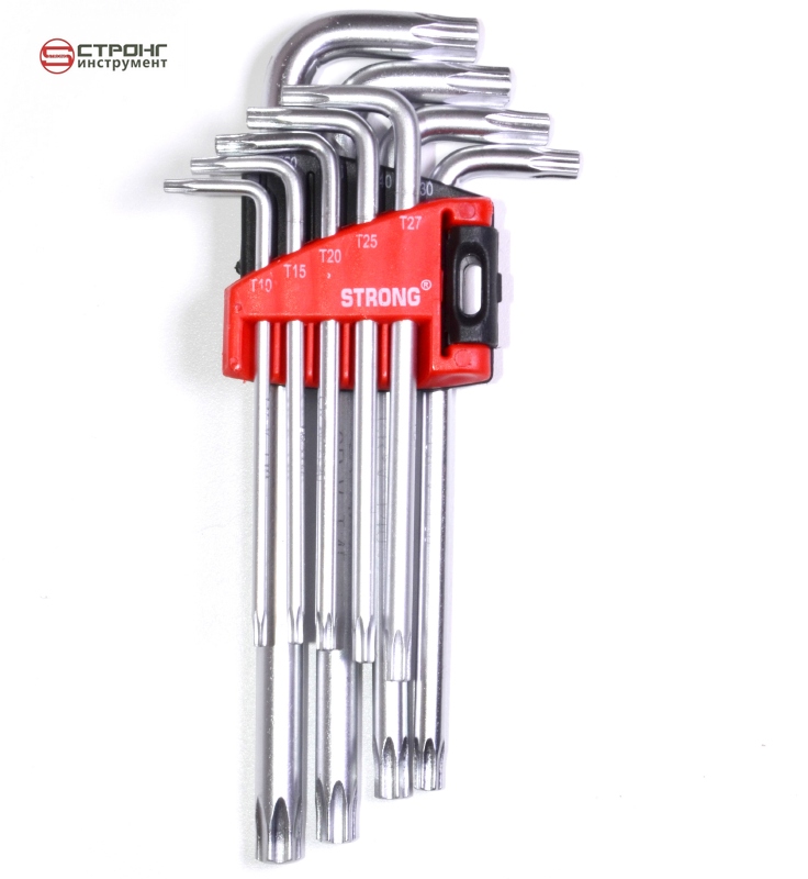 Длинные имбусовые ключи звездочки предназначены для работы с различными крепежами, оснащенными шлицом TORX - закручивание (откручивание) винтов, саморезов, конфирматов, имеющих углубление в форме шестилучевой звезды. Имеют для удобства Г–образную форму. Изготовлены из высококачественной хромванадиевой стали твердостью 50-55 HRС. Никелевое покрытие защищает изделия от коррозии. Позволяет использовать на порядок больший крутящий момент, по сравнению с крестообразным инструментом. Ключи-торксы применяются во многих отраслях деятельности — в авторемонте, сборке мебели, в пластиковых окнах, велосипедах и мототехнике, в бытовой технике.