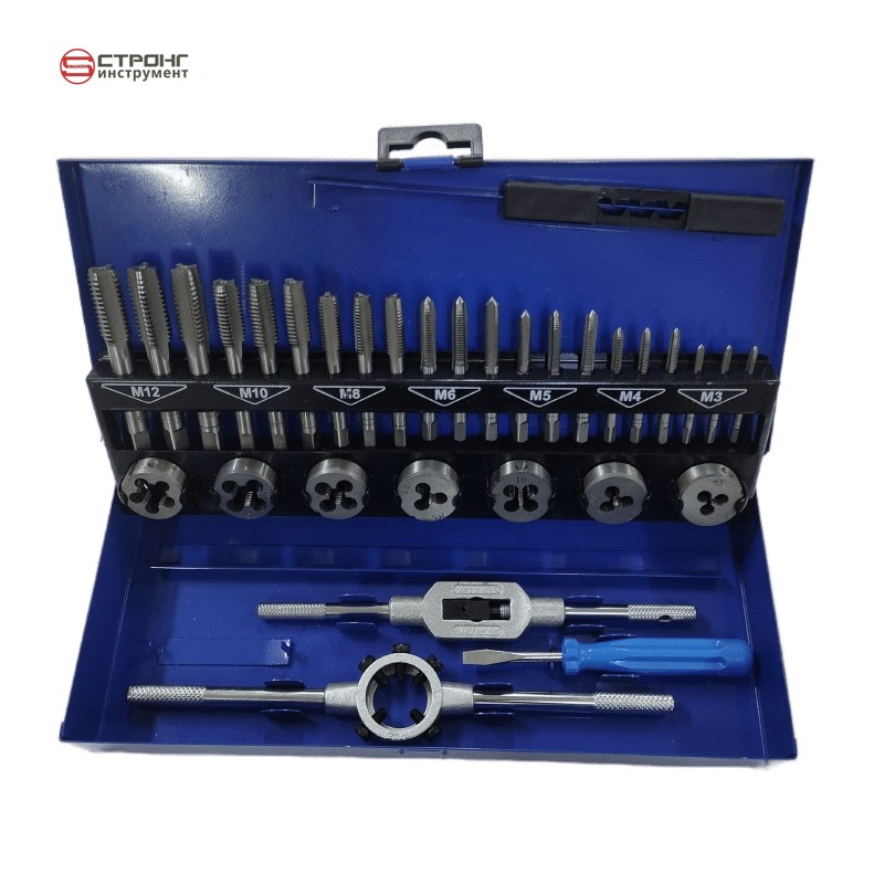 Набор метчиков СТРОНГ - используется для нарезания различной резьбы на внутренних и внешних металлических поверхностях. Метчики и плашкодержатели оснащены удобными рукоятками, что обеспечивает комфортную работу инструментом.