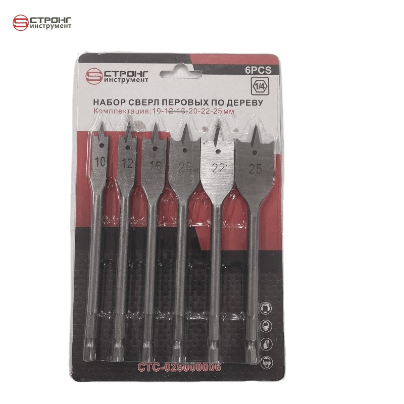 Набор перовых сверл по дереву 6 предм. 1/4" 10-25мм, СТС-02500006